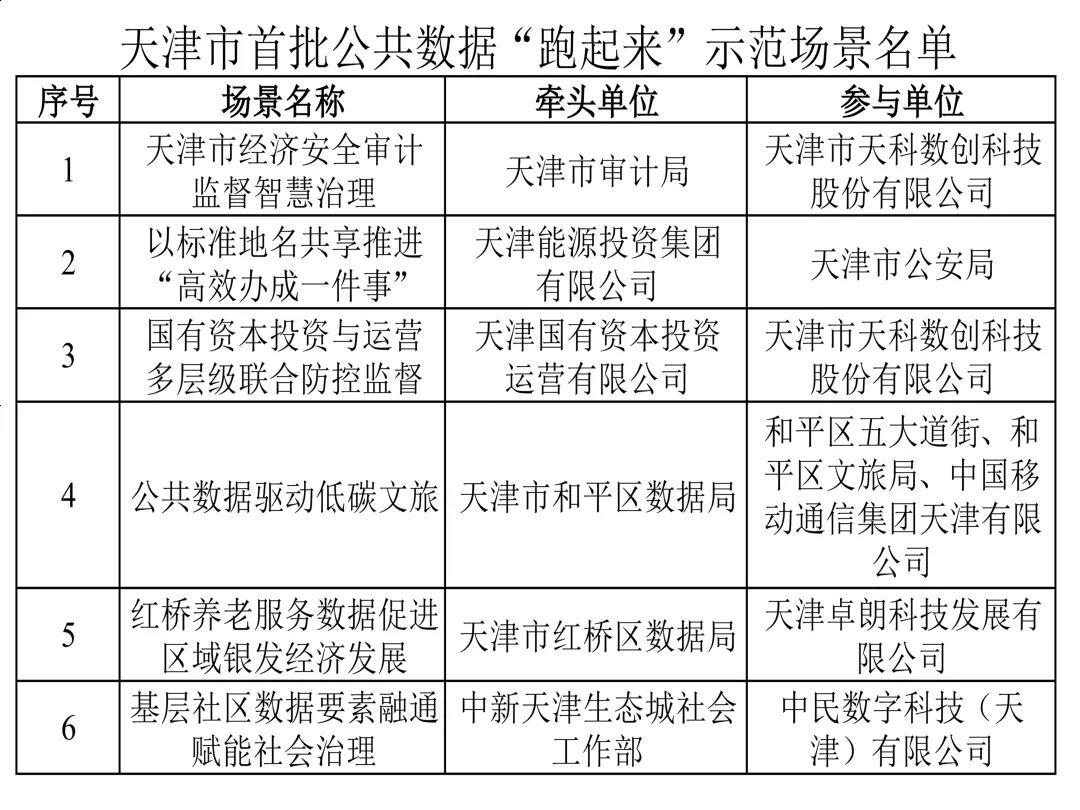 市数据局发布天津市首批公共数据“跑起来”示范场景清单